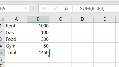 worksheet.write(row, 1, '=SUM(B1:B4)')