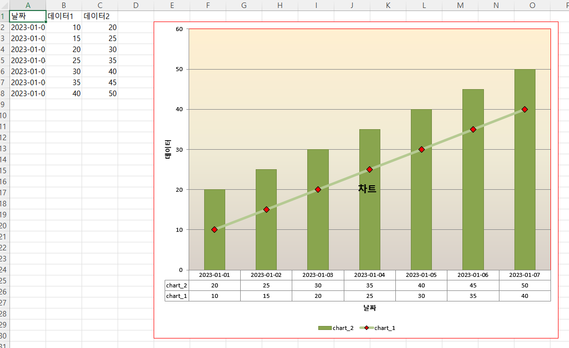 column_chart.set_x_axis({'name': '날짜'}) # X 축 이름